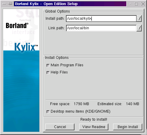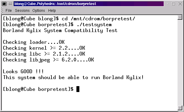 Once the system libraries are acceptable, you can then proceed to install Kylix itself with: