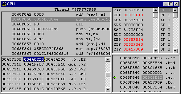 The intention of this section is not to teach assembly programming. That is a job for other people (see the References at the end of this paper). However, in order to make best use of the CPU window we will need to know what some commonly encountered instructions mean. To decode others, use an assembly reference, such as one of the aforementioned references.
