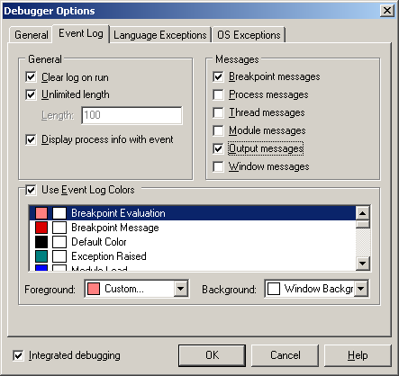 You can see by examining the content of some of the above methods that the breadth of information supplied to profilers is wide and varied. You might also note that all the methods log their event details using the Log method. Log is another helper method (actually a pair of overloaded methods) in the base profiler class TBaseProfiler. It currently operates by building up a string using Format and passing it to the OutputDebugString API but this could readily be changed to support logging to a file, for example.
